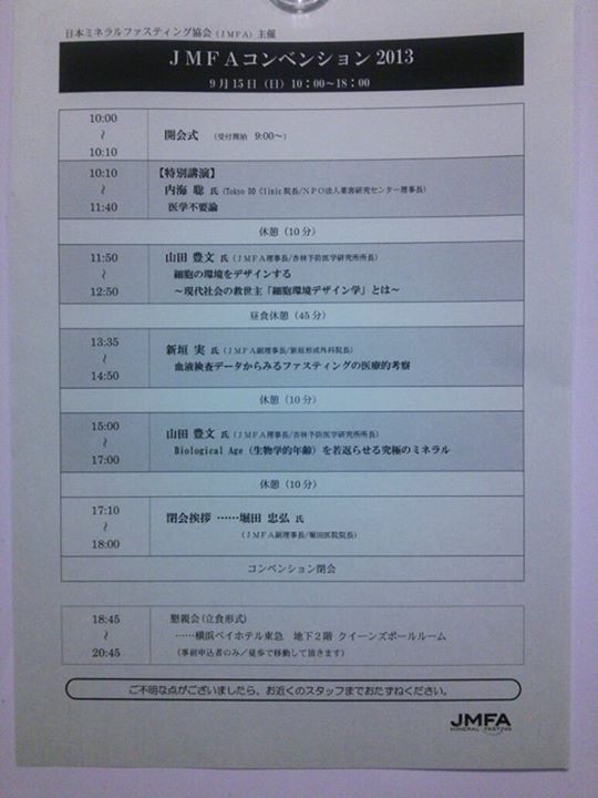 台風接近中の今日、横浜で開催された、日本ミネラルファスティング協会主催のJMFAコンベンション2013に参加しました。