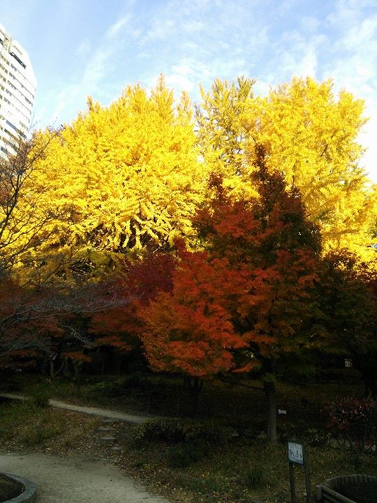 紀尾井町、ホテルニューオータニ前の銀杏が綺麗に色付きました。都心の秋。