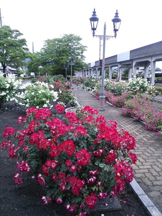 雨上がりの薔薇は、しずくで花びらが重そうです。
