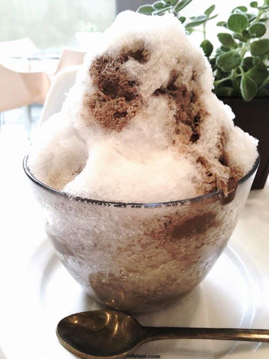 群馬県桐生市のパティスリーMiyakeのかき氷は、マンゴー、ストロベリー、チョコレートと3種類。各550円です。