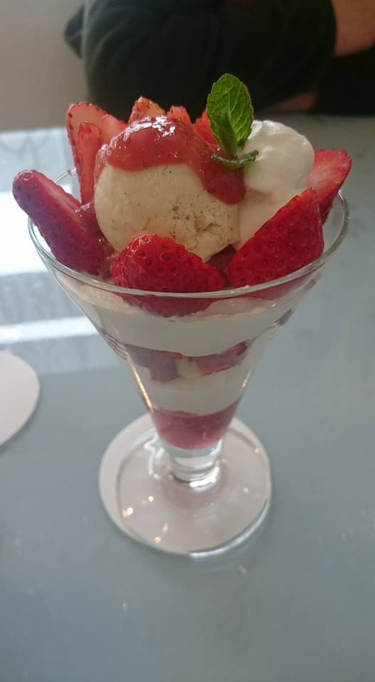 豆乳クリームとマヌカハニーを使った、優しい甘さの苺パフェをいただきました。